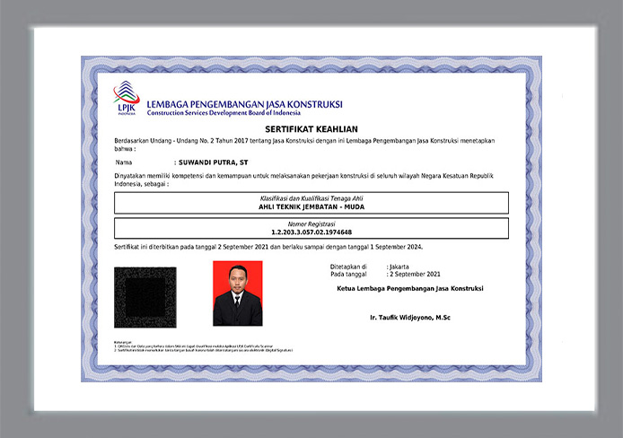 PT. PUTRA LINTANG YASA PERDANA memiliki Sertifikat Keahlian Konstruski (SKK) yang diterbitkan oleh Dinas PUPR - LPJK